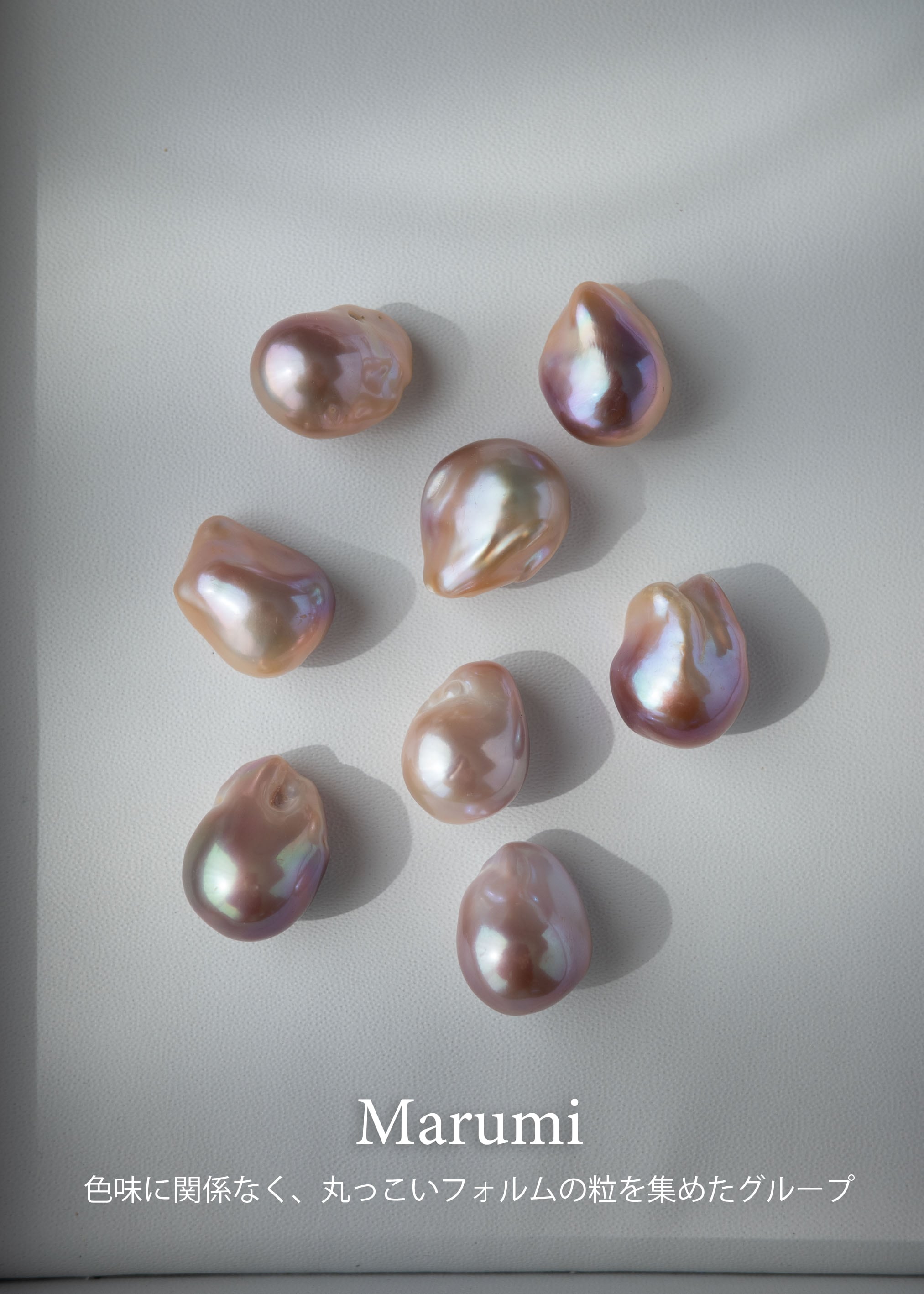それぞれの粒には、自然の中で育まれた証として小さな傷や凹み、真珠層の薄い部分が見られることがございます。