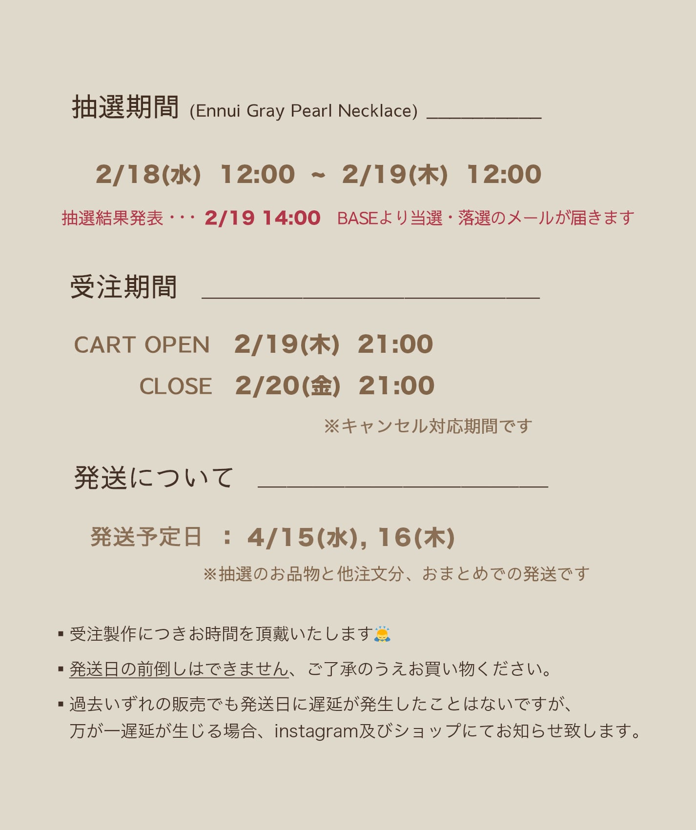 発送予定:2026年4月15日 〜 2026年4月16日